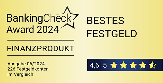1. Platz – "Bestes Festgeld 2024" (4,6 von 5 möglichen Punkten)